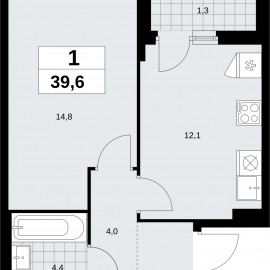 1-комн. квартира в ЖК "Прокшино" на 15 этаже. Квартира без отделки, полностью готова к чистовой отделке и дальнейшему ремонту. Общая площадь: 39.2 кв.м., жилая: 12.1 кв.м., площадь просторной кухни-столовой: 14.8 кв.м. Все окна выходят на одну сторону. В квартире одна лоджия, один...