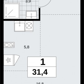 Просторная 1-комн. квартира-студия в ЖК "Прокшино" на 10 этаже. Квартира без отделки, полностью готова к ремонту. Общая площадь: 31.4 кв.м., площадь гостиной 22.6 кв.м., из которых 5.8 кв.м. выделено под кухонную зону. Все окна выходят на одну сторону. В квартире один совмещенный...