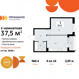 Однокомнатная квартира от застройщика с отделкой в ЖК "Прокшино" на 6 этаже. Общая площадь: 37.5 кв.м., жилая: 14.4 кв.м., площадь просторной кухни-столовой: 12.1 кв.м. Все окна выходят на одну сторону. В квартире одна лоджия, один совмещенный санузел. Высота потолков 2.95 м. Эта квартира...