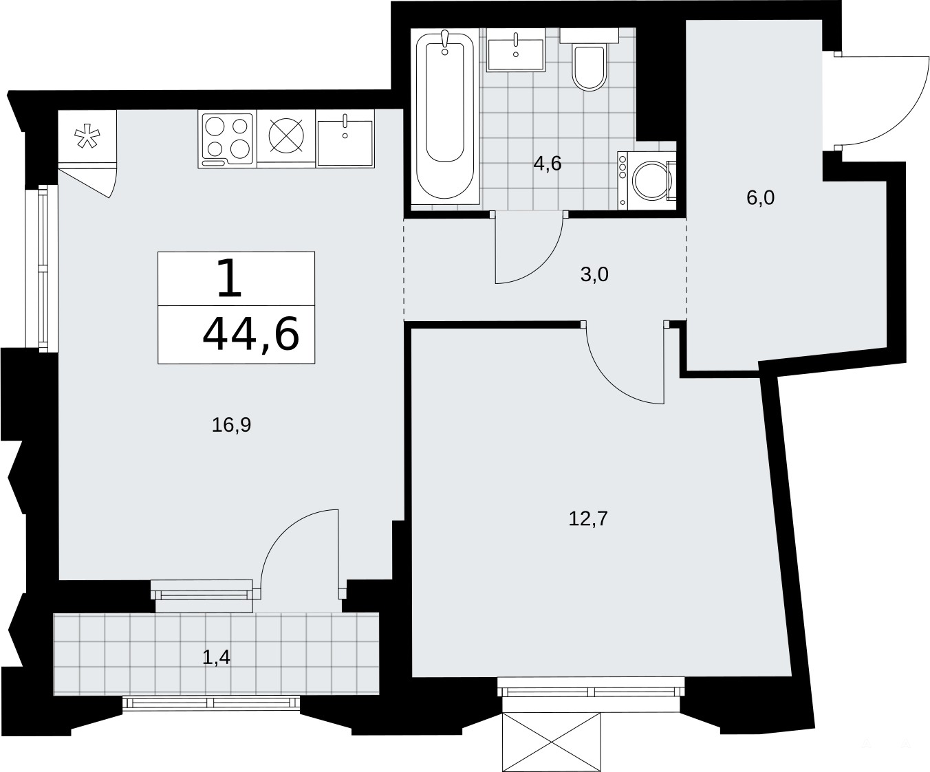 - 16.9 м²