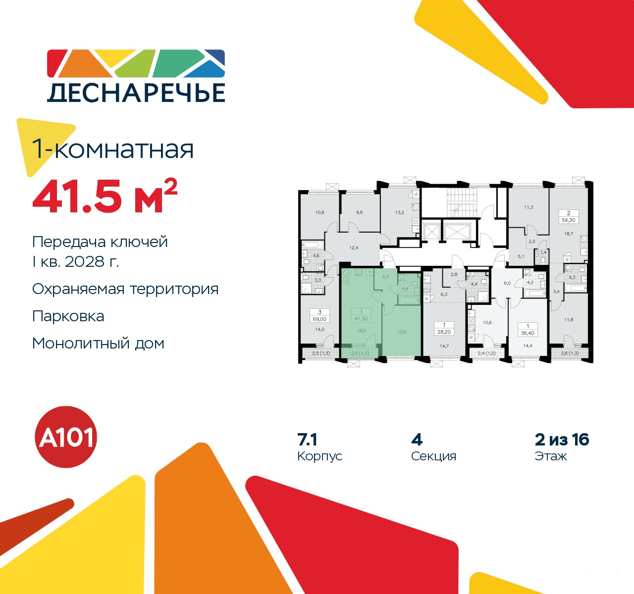Дом монолитный, многоподъездный, переменной этажности, от 8 до 16 этажей. Квартира находится в 4-й секции высотой 11 этажей в корпусе 7.1. На этаже 5 квартир. В подъезде 1 пассажирский и 1 грузовой лифт. Начало строительства - 2 квартал 2025 года. Окончание строительства - 1 квартал 2028 года. Оформление сделки по договору долевого участия.