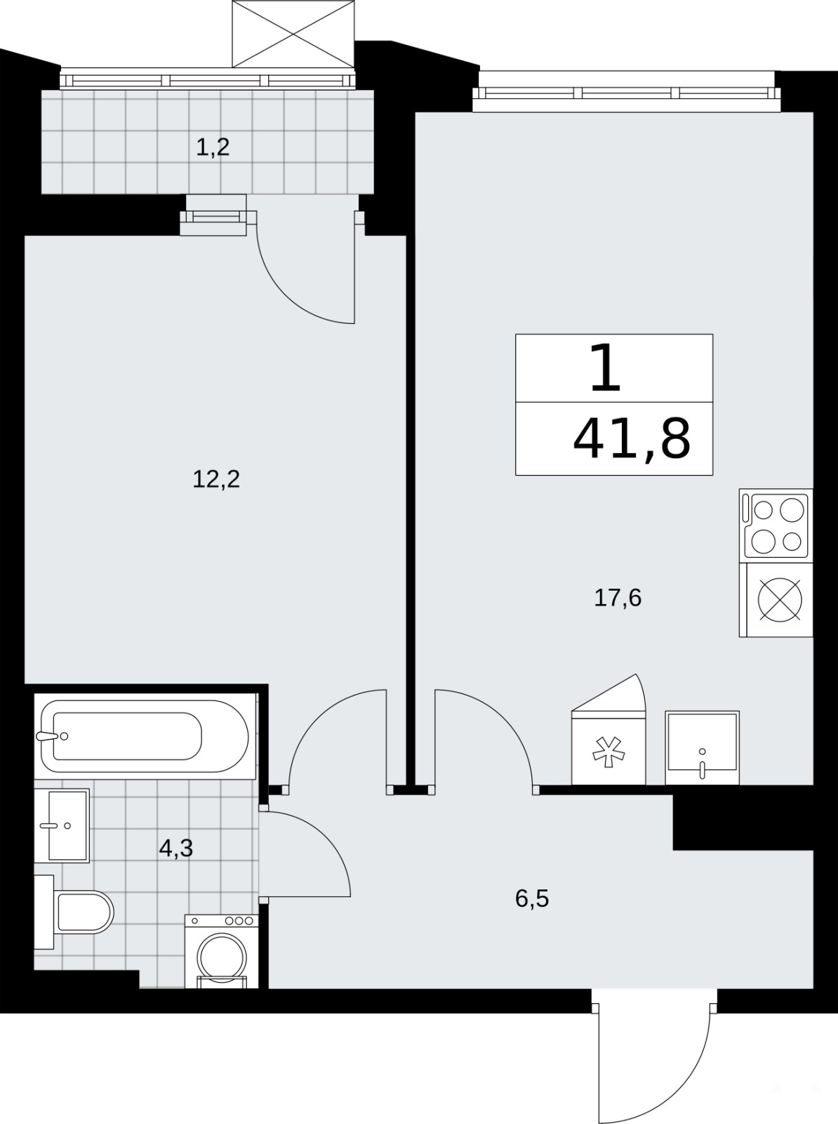 Однокомнатная квартира в ЖК "Деснаречье" на 12 этаже. Квартира без отделки, новый собственник может сделать ремонт по индивидуальному проекту. Общая площадь: 41.8 кв.м., жилая: 12.2 кв.м., площадь просторной кухни-столовой: 17.6 кв.м. Все окна выходят на одну сторону. В квартире одна лоджия, один совмещенный санузел. Высота потолков 2.95 м.