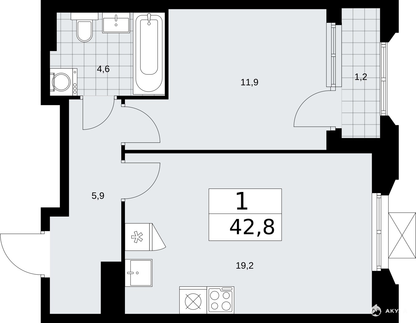 - 11.9 м²