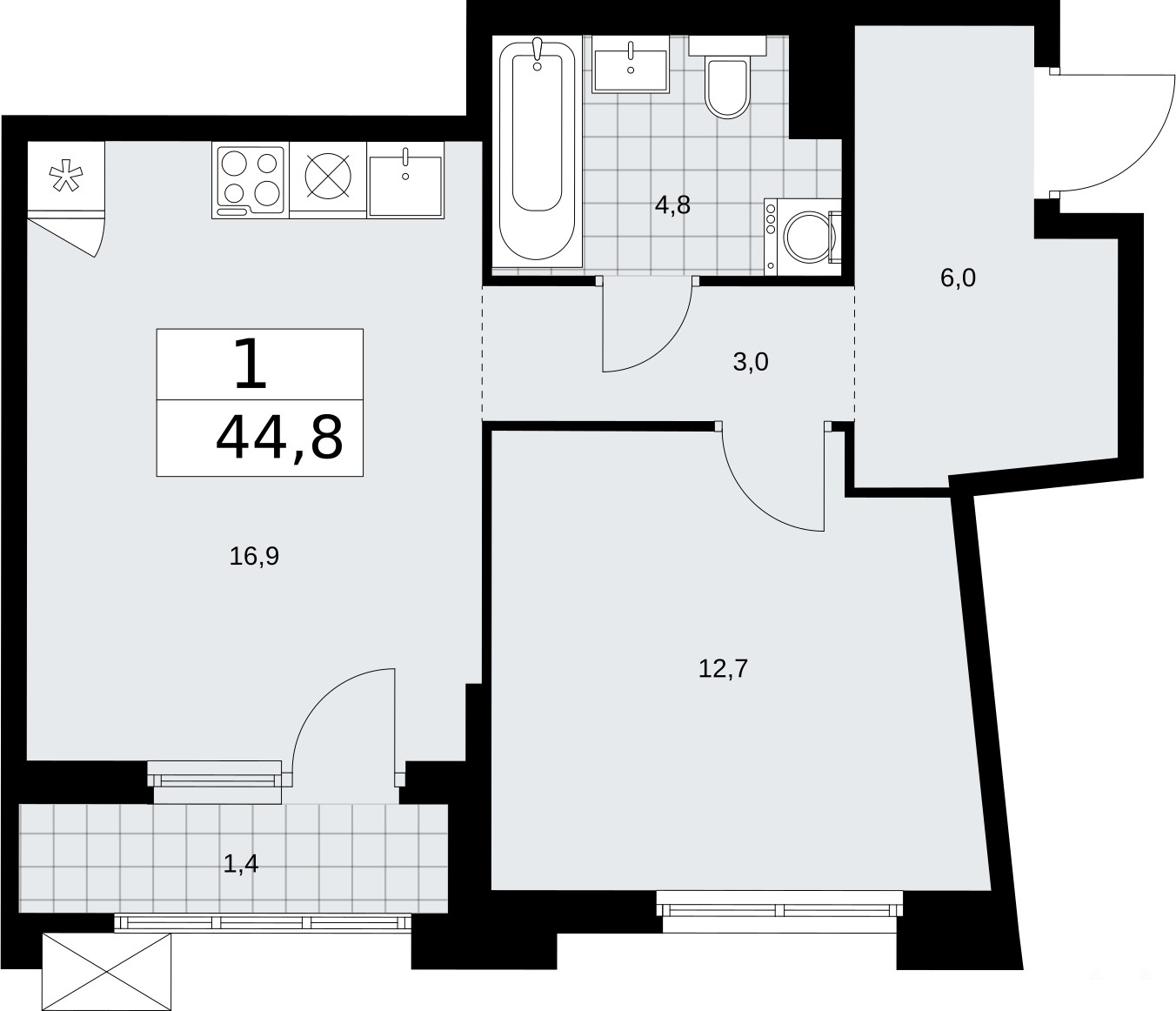 - 16.9 м²