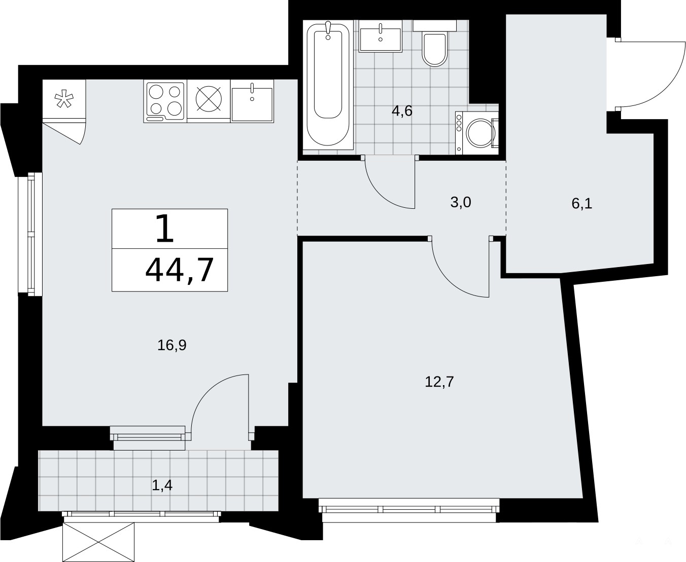 - 16.9 м²