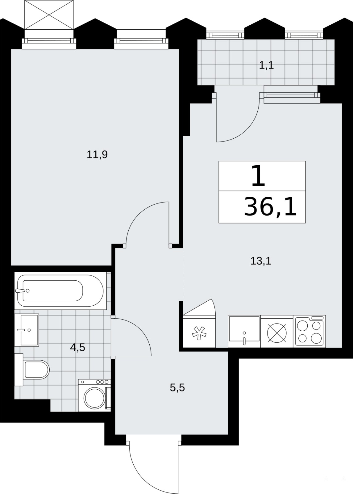 - 11.9 м²