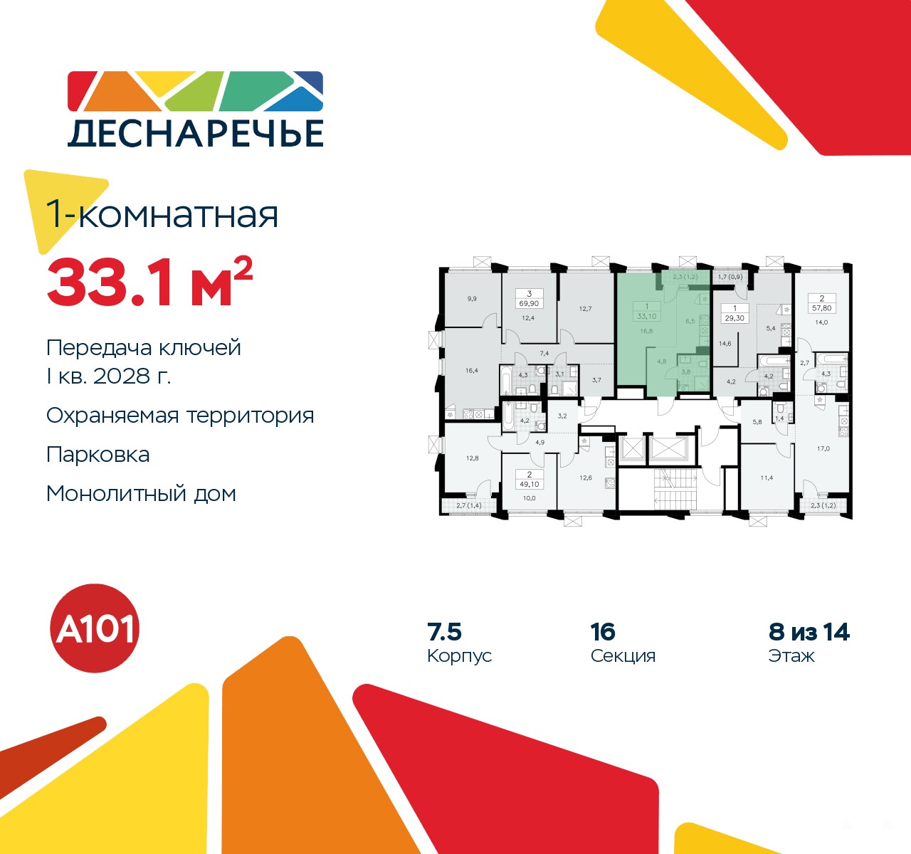 Дом монолитный, трехподъездный, переменной этажности, от 11 до 17 этажей. Квартира находится в 1-й секции высотой 11 этажей в корпусе 7.5. На этаже 5 квартир. В подъезде 1 пассажирский и 1 грузовой лифт. Начало строительства - 2 квартал 2025 года. Окончание строительства - 1 квартал 2028 года. Оформление сделки по договору долевого участия.