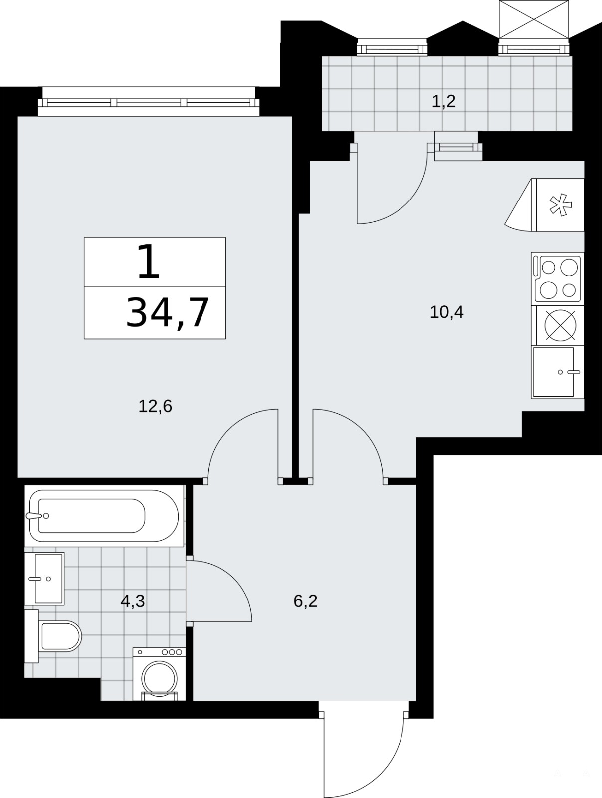 - 12.6 м²