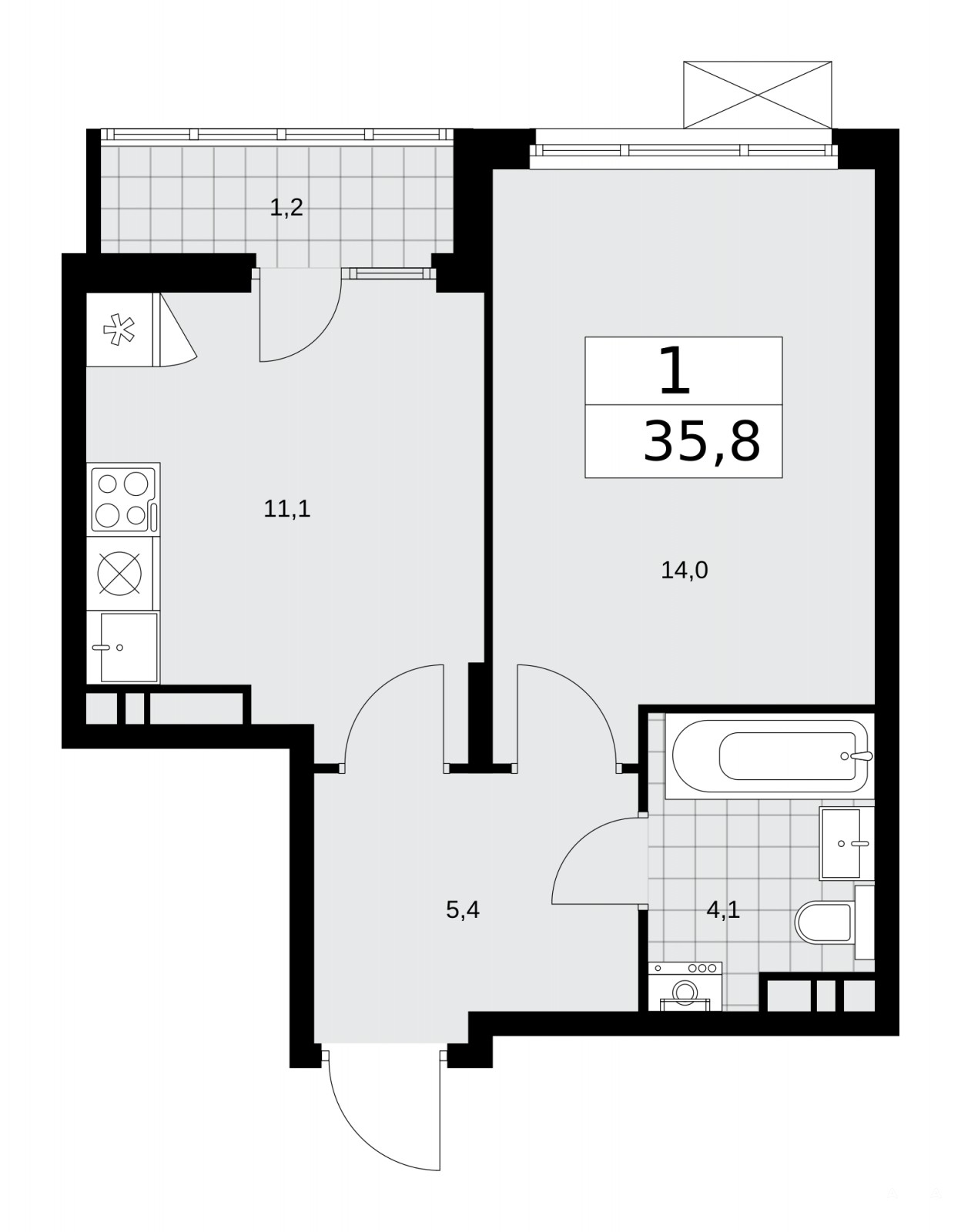 1-комн. квартира от застройщика в ЖК "Деснаречье" на 15 этаже. Квартира без отделки, новый владелец может сделать ремонт по индивидуальному дизайн-проекту. Общая площадь: 35.8 кв.м., жилая: 14 кв.м., площадь просторной кухни-столовой: 11.1 кв.м. Все окна выходят на одну сторону. В квартире одна лоджия, один совмещенный санузел. Высота потолков 2.99 м.