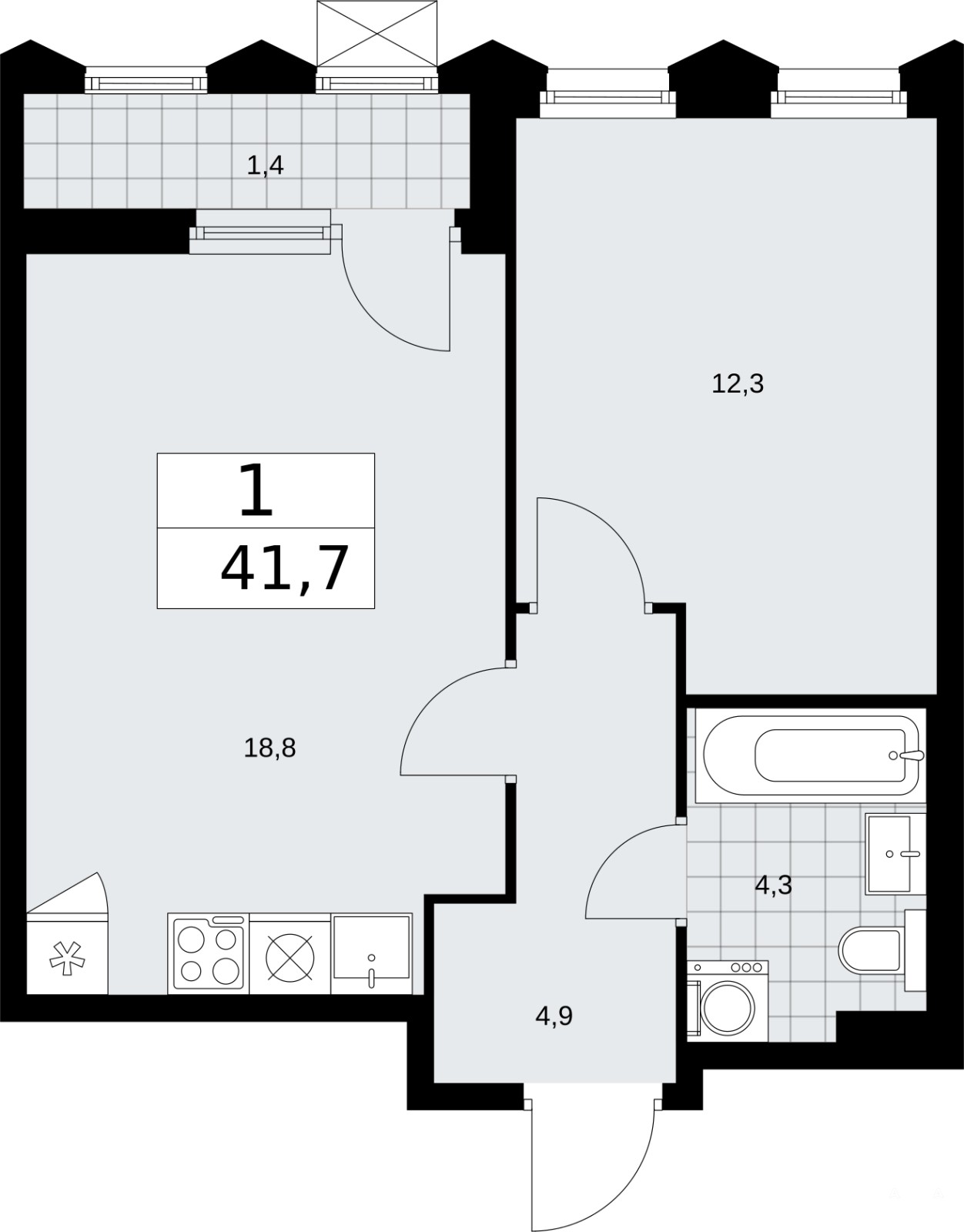 1-комн. квартира в ЖК "Деснаречье" на 9 этаже. Квартира без отделки, полностью готова к ремонту. Общая площадь: 41.7 кв.м., жилая: 12.3 кв.м., площадь просторной кухни-столовой: 18.8 кв.м. Все окна выходят на одну сторону. В квартире одна лоджия, один совмещенный санузел. Высота потолков 2.95 м.