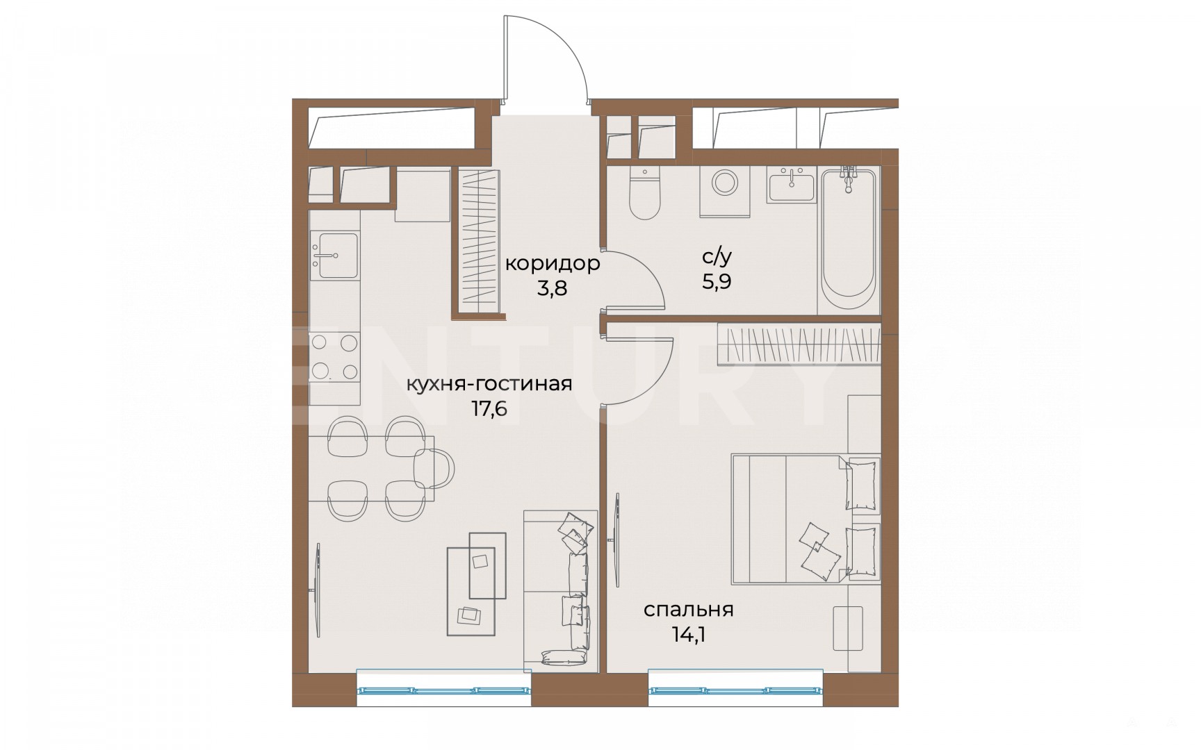 - 17.6 м²