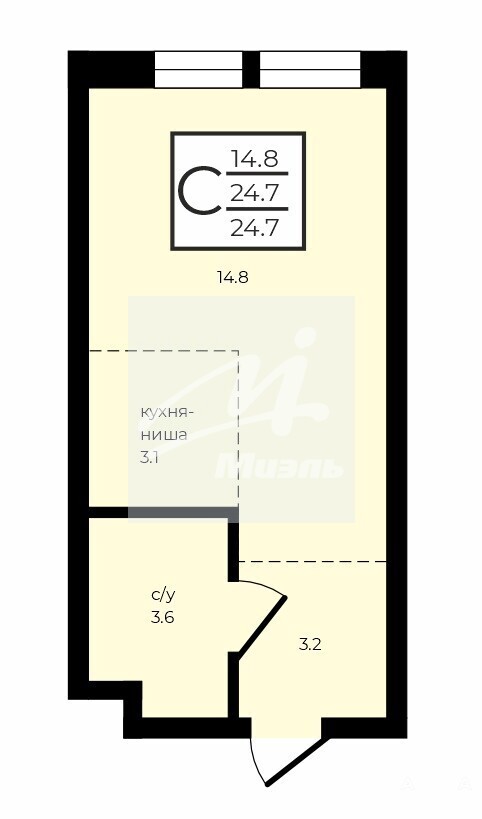 Эргономичные апартаменты-студия 24, 6 кв.м.: продуманная планировка позволяет комфортно разместить спальную и рабочую зоны. Высокие потолки и панорамное остекление создают ощущение простора и наполняют пространство светом. Свой балкон — ваша оранжерея или место для утреннего кофе. Прекрасное дополнение, которое редко встречается в студиях. Отсюда открывается прекрасный вид!