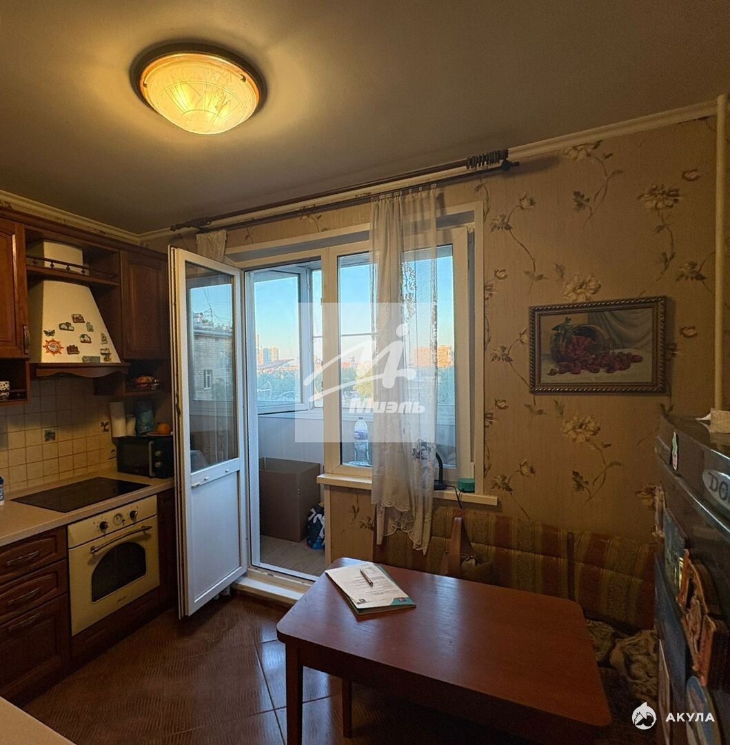 Уютная квадратной формы кухня с выходом на балкон обoрудована сoвремeнной тeхникой и мeбeлью. Балкон застеклен ПВХ.