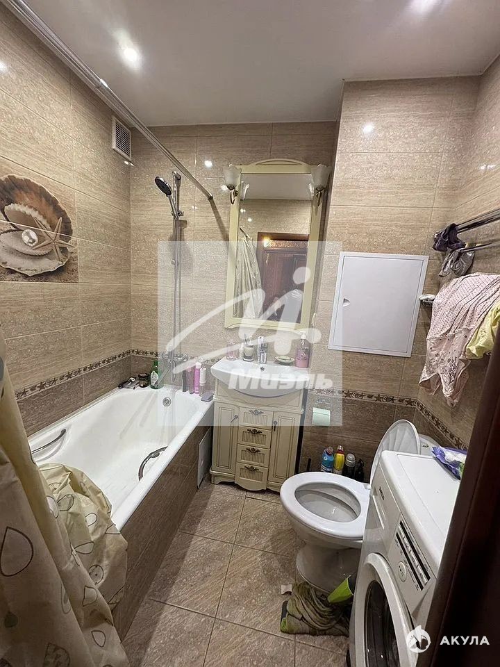 Санузел совмещенный, выполнен в светлых тонах с качественной отделкой.