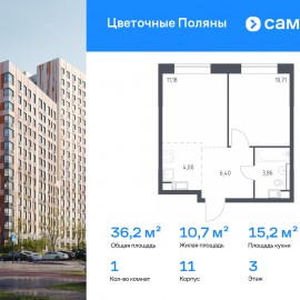 Строим кварталы для жизни с заботой о будущем. Предлагается 1-комнатная квартира комфорт-класса 36, 15 кв.м в корпусе 11 на 3 этаже, в ЖК «Цветочные Поляны» Квартира без отделки. Доступность опции «отделка» и возможность комплектации мебелью и декором уточняйте у...
