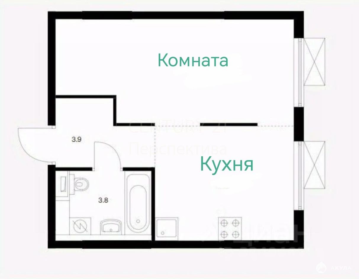 Площадь 34, 5кв..м, кухня 11 кв метров и 16 метров комната, с/у совмещенный.