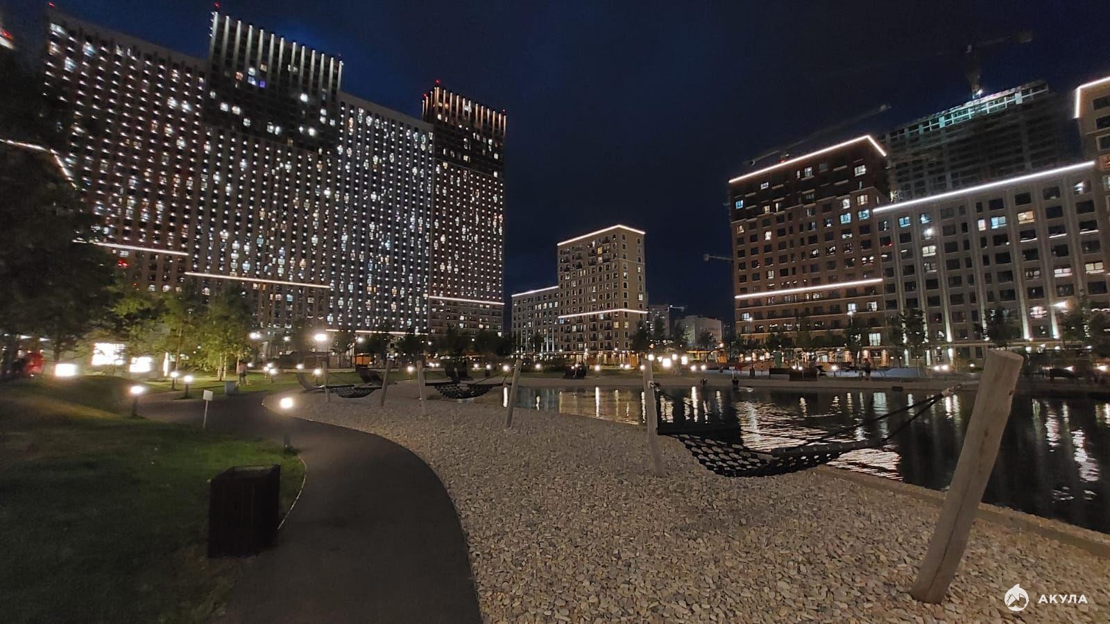 Закрытый двор без машин со входом по пропускам, с озером, прогулочной зоной, беседками, детскими площадками и зоной для тренировок. Во дворе также есть баскетбольная площадка. В вечернее время комплекс освещается подсветкой с домов и фонарями по территории двора.