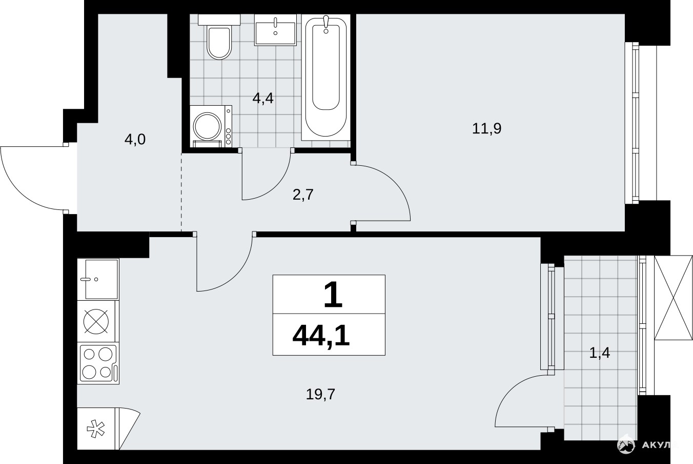 - 11.9 м²