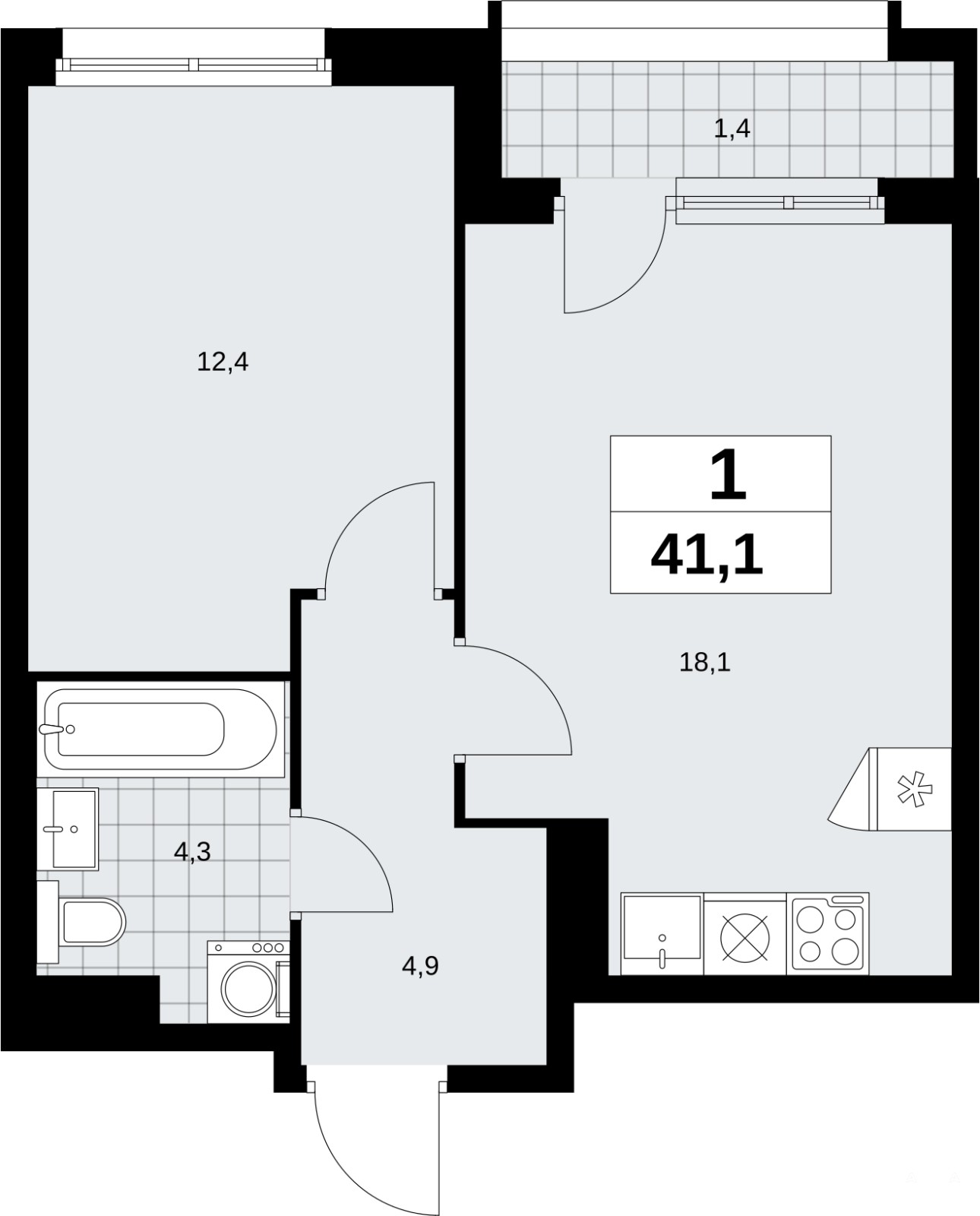 - 12.4 м²