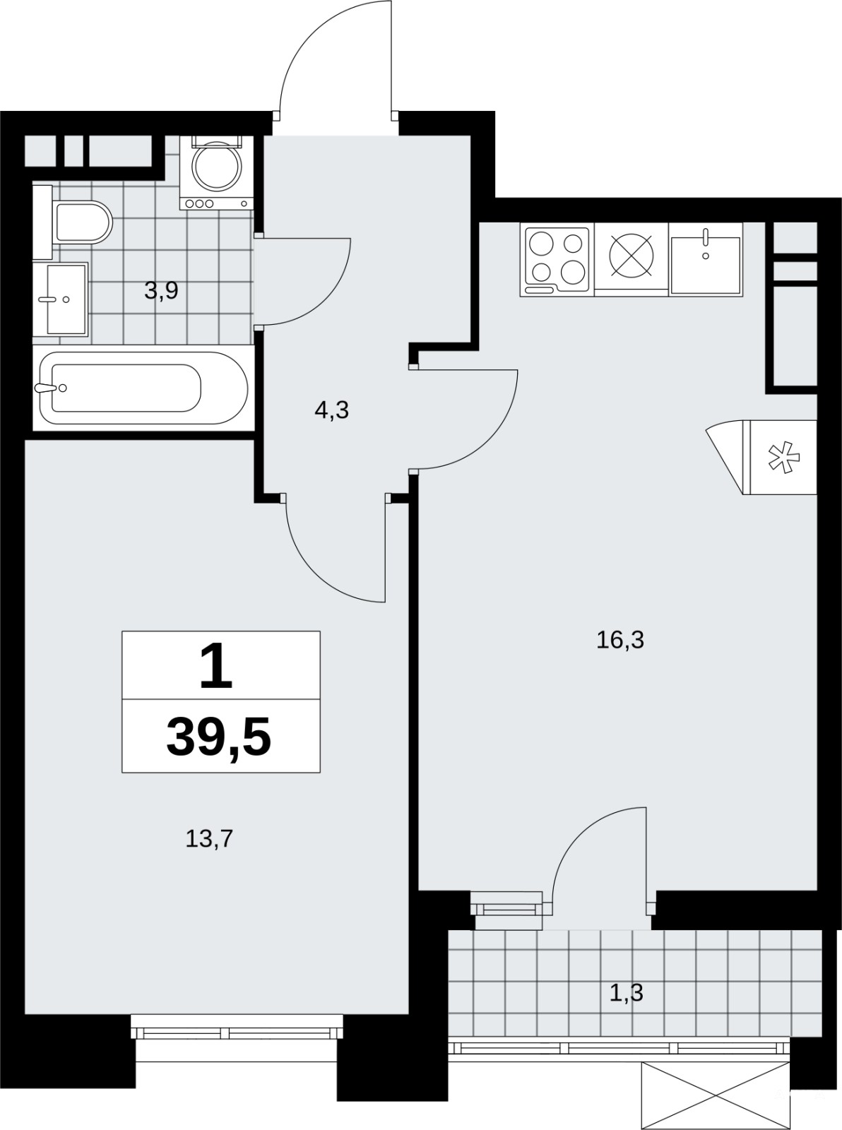 - 16.3 м²