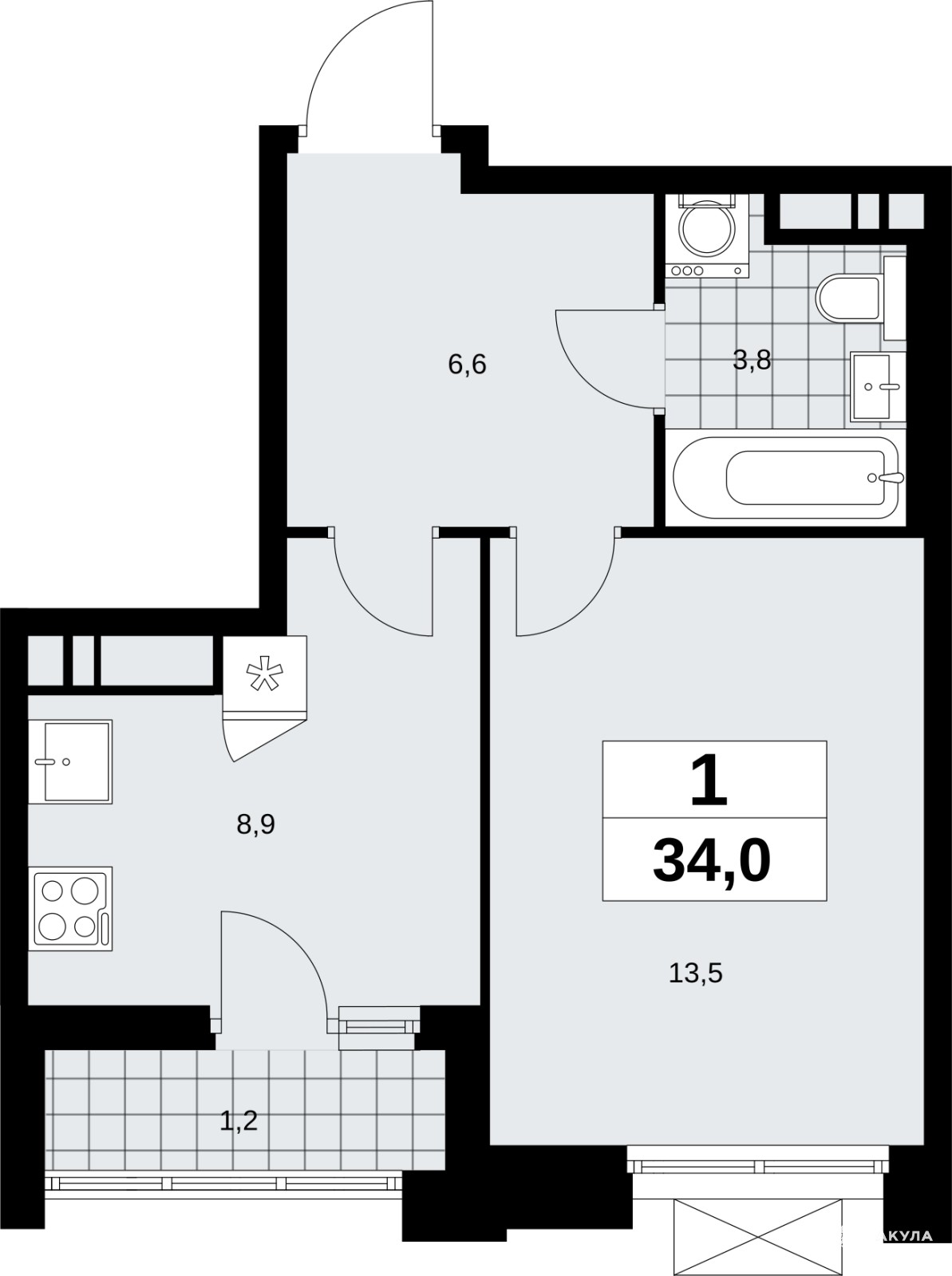 Просторная однокомнатная квартира с отделкой в ЖК "Прокшино" на 14 этаже. Общая площадь: 34 кв.м., жилая: 13.5 кв.м., площадь кухни: 8.9 кв.м. Все окна выходят на одну сторону. В квартире одна лоджия, один совмещенный санузел. Высота потолков 2.95 м.