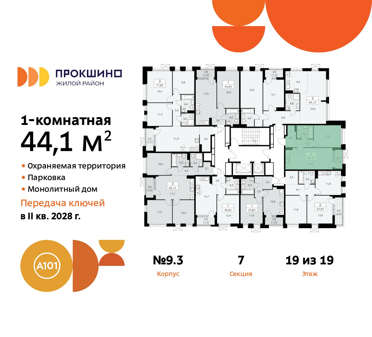 Квартира находится в корпусе 9.3. Дом монолитный, одноподъездный, высотой 19 этажей. На этаже 9 квартир. В подъезде 1 пассажирский и 1 грузовой лифт. Начало строительства - 3 квартал 2025 года. Окончание строительства - 4 квартал 2027 года. Оформление сделки по договору долевого участия.