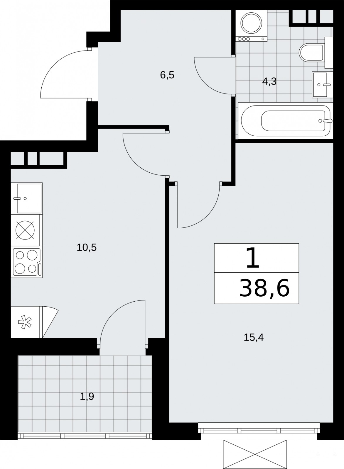Однокомнатная квартира от застройщика в ЖК "Бунинские кварталы" на 16 этаже. Квартира без отделки, после оформления собственности можно делать ремонт. Общая площадь: 38.6 кв.м., жилая: 15.4 кв.м., площадь просторной кухни-столовой: 10.5 кв.м. Все окна выходят на одну сторону. В квартире одна лоджия, один совмещенный санузел. Высота потолков 2.85 м.