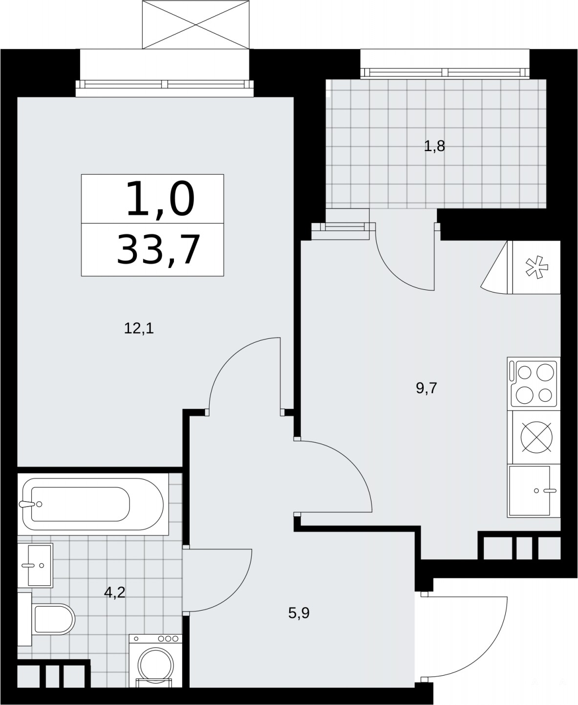 Просторная 1-комн. квартира в ЖК "Бунинские кварталы" на 10 этаже. Квартира без отделки, полностью готова к чистовой отделке и дальнейшему ремонту. Общая площадь: 33.7 кв.м., жилая: 12.1 кв.м., площадь просторной кухни-столовой: 9.7 кв.м. Все окна выходят на одну сторону. В квартире одна лоджия, один совмещенный санузел. Высота потолков 3.1 м.