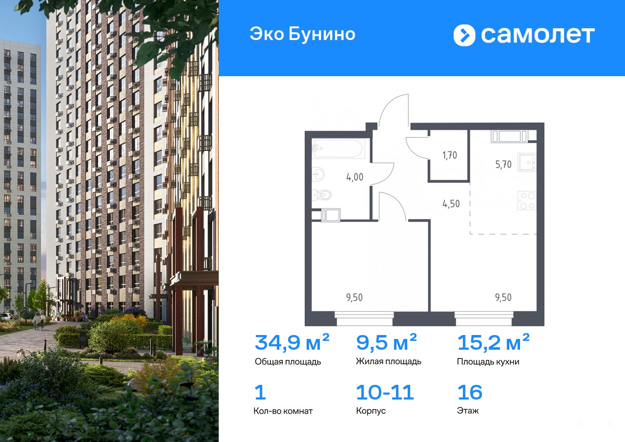 Строим кварталы для жизни с заботой о будущем. Предлагается 1-комнатная квартира комфорт-класса 34, 9 кв.м в корпусе 10-11 на 16 этаже, в ЖК «Эко Бунино»