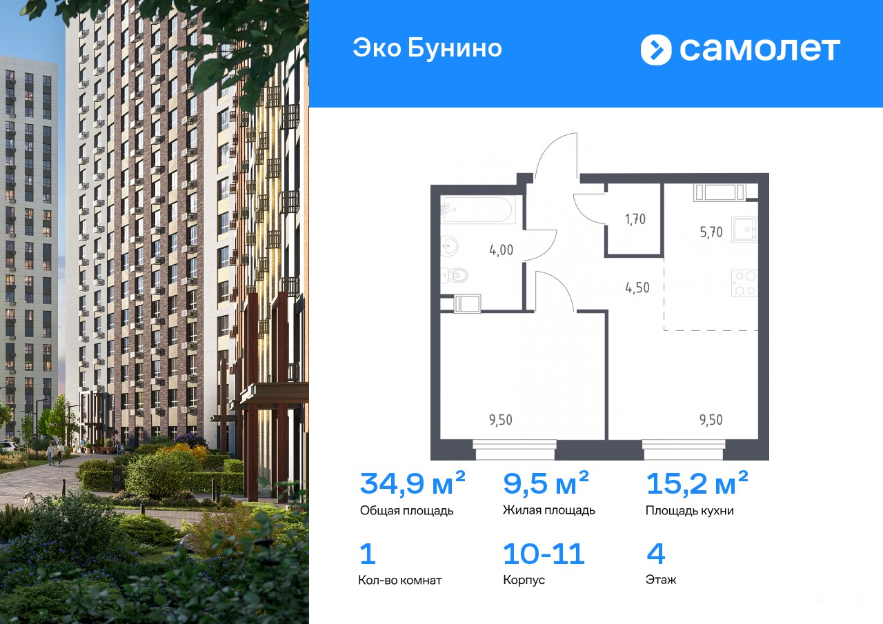 Строим кварталы для жизни с заботой о будущем. Предлагается 1-комнатная квартира комфорт-класса 34, 9 кв.м в корпусе 10-11 на 4 этаже, в ЖК «Эко Бунино»