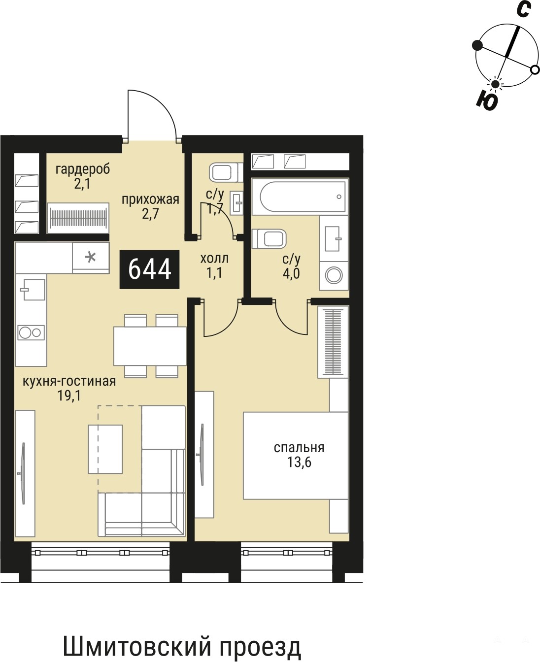 Продается 1-комн. квартира в ЖК "Шелепиха" на 27 этаже. Квартира без отделки, после выдачи ключей можно делать ремонт. Общая площадь: 44.3 кв.м., жилая: 13.6 кв.м., площадь просторной кухни-столовой: 19.1 кв.м. Все окна выходят на одну сторону. В квартире один совмещенный и один раздельный санузел. Высота потолков 3 м.