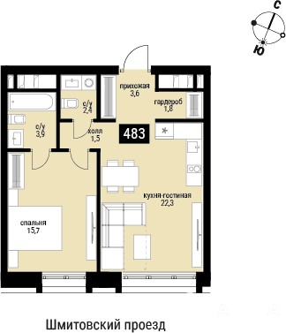 1-комн. квартира от застройщика в ЖК "Шелепиха" на 15 этаже. Квартира без отделки, после выдачи ключей можно делать ремонт. Общая площадь: 51.2 кв.м. Высота потолков 3 м.