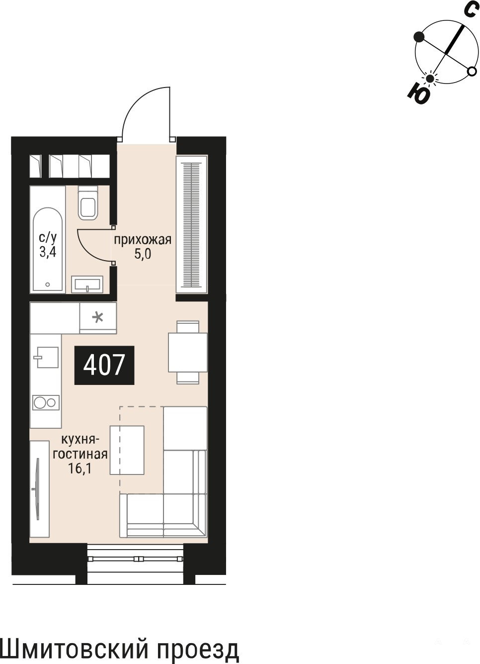 Однокомнатная квартира-студия от застройщика в ЖК "Шелепиха" на 13 этаже. Квартира без отделки, после оформления собственности можно делать ремонт. Общая площадь: 25 кв.м., площадь гостиной 16.1 кв.м., из которых 5 кв.м. выделено под кухонную зону. Все окна выходят на одну сторону. В квартире один совмещенный санузел. Высота потолков 3 м.