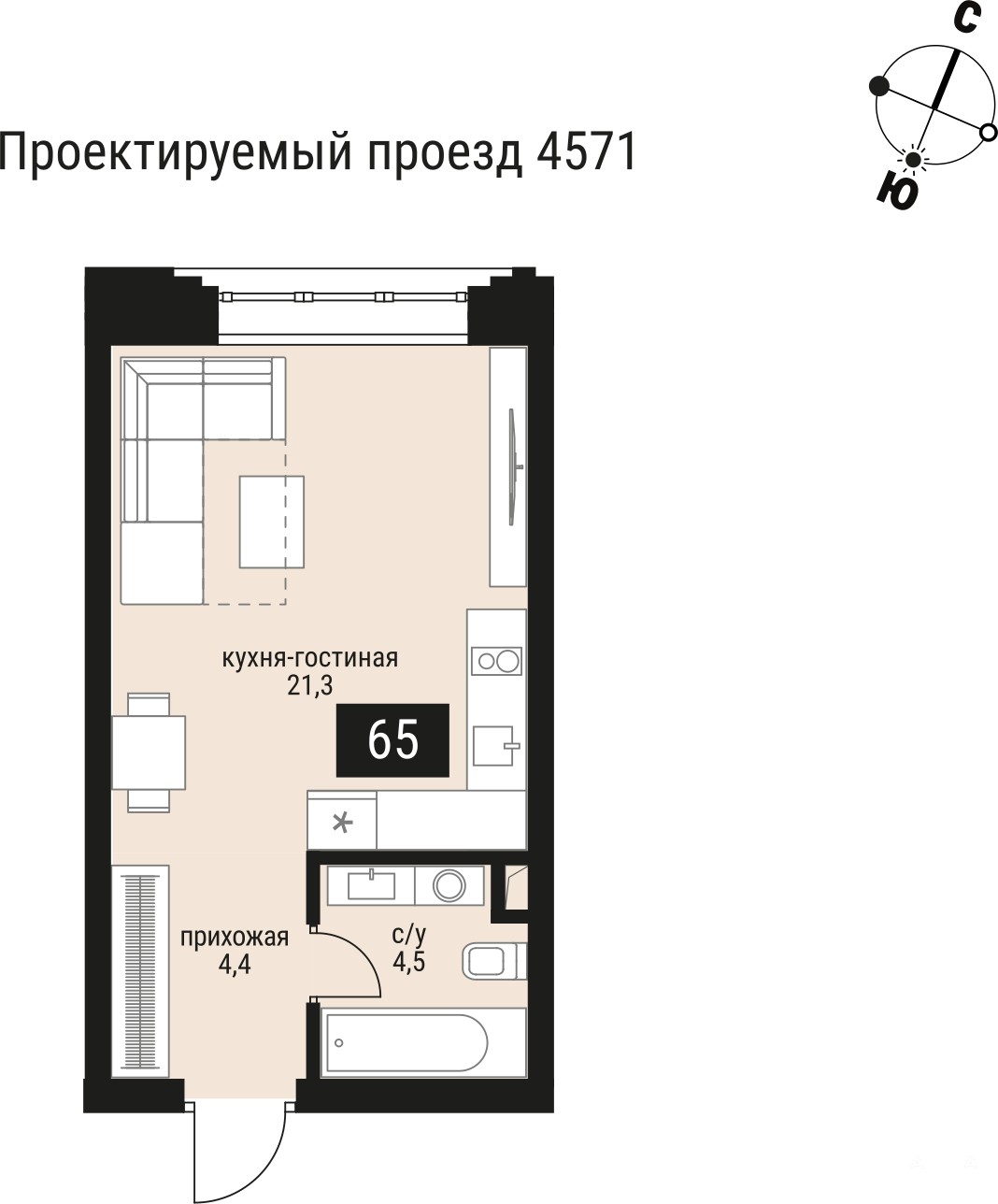 1-комн. квартира-студия от застройщика в ЖК "Шелепиха" на 9 этаже. Квартира без отделки, новый собственник может сделать ремонт по индивидуальному дизайн-проекту. Общая площадь: 30.3 кв.м., площадь гостиной 21.3 кв.м., из которых 5 кв.м. выделено под кухонную зону. Все окна выходят на одну сторону. В квартире один совмещенный санузел. Высота потолков 3 м.