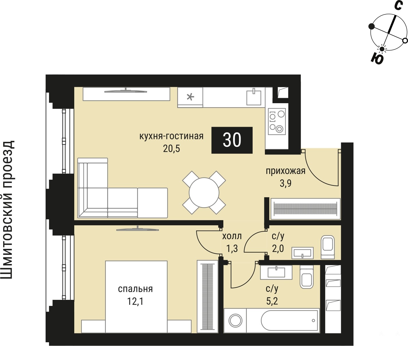 Просторная однокомнатная квартира в ЖК "Шелепиха" на 25 этаже. Квартира без отделки, новый собственник может сделать ремонт по индивидуальному проекту. Общая площадь: 45.1 кв.м., жилая: 12.1 кв.м., площадь просторной кухни-столовой: 20.5 кв.м. Все окна выходят на одну сторону. В квартире один совмещенный и один раздельный санузел. Высота потолков 3 м.