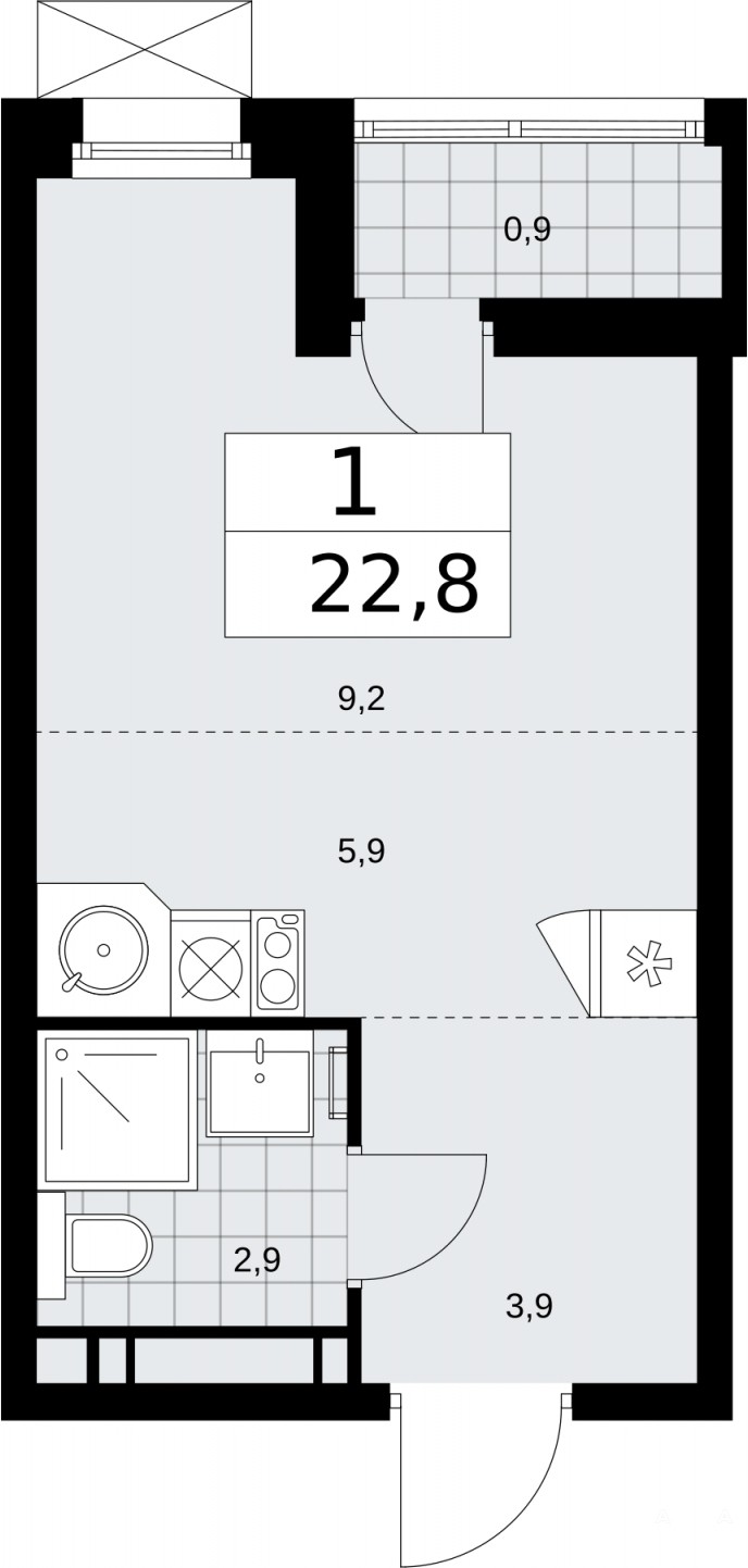 Продается 1-комн. квартира-студия в ЖК "Скандинавия" на 10 этаже. Квартира без отделки, новый собственник может сделать ремонт по индивидуальному дизайн-проекту. Общая площадь: 22.8 кв.м., площадь гостиной 15.1 кв.м., из которых 5.9 кв.м. выделено под кухонную зону. Все окна выходят на одну сторону. В квартире одна лоджия, один совмещенный санузел. Высота потолков 3.1 м.