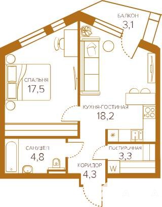 Продается 1-комнатная квартира в доме Champine (Сосинская, д. 8) .