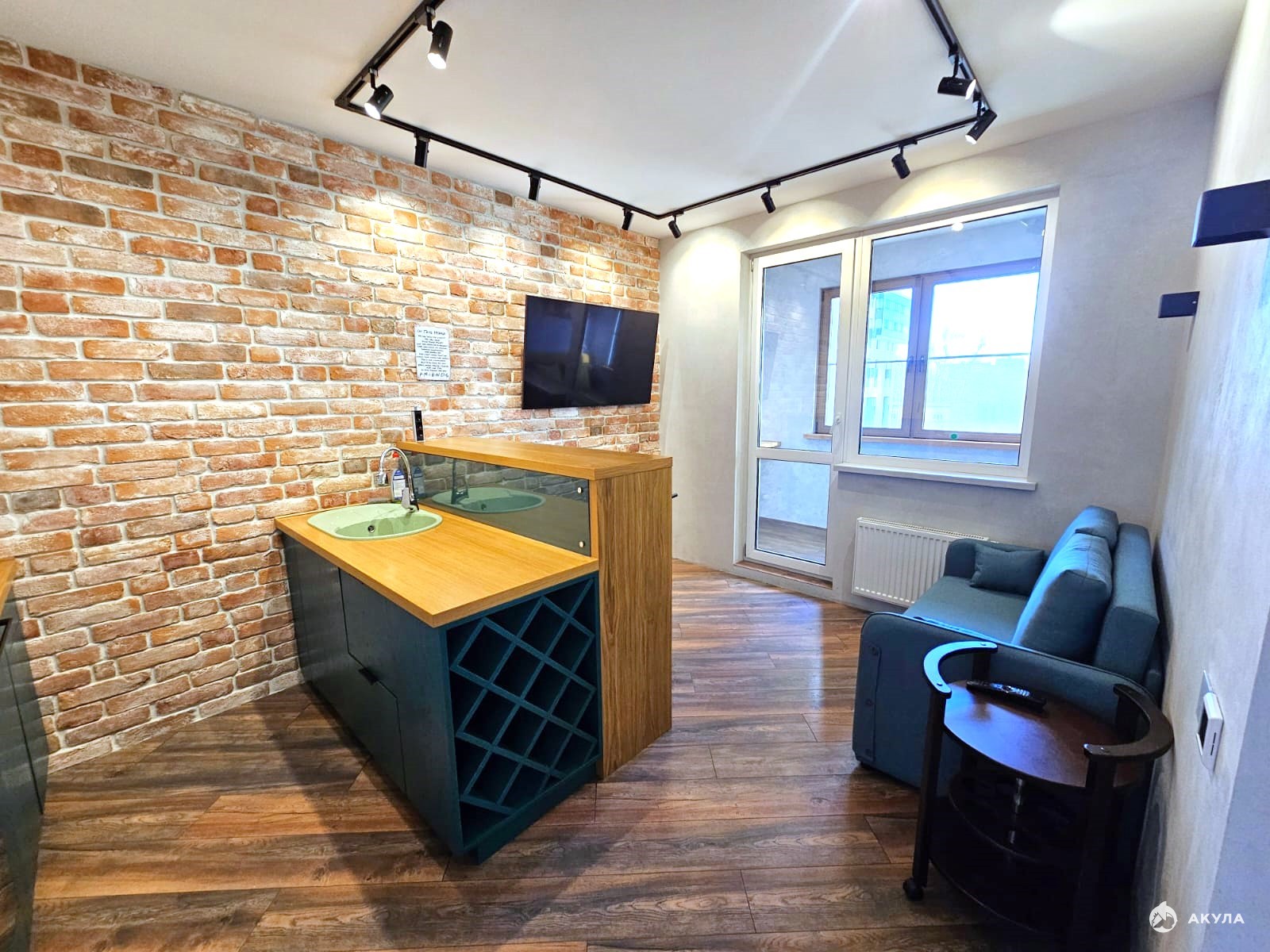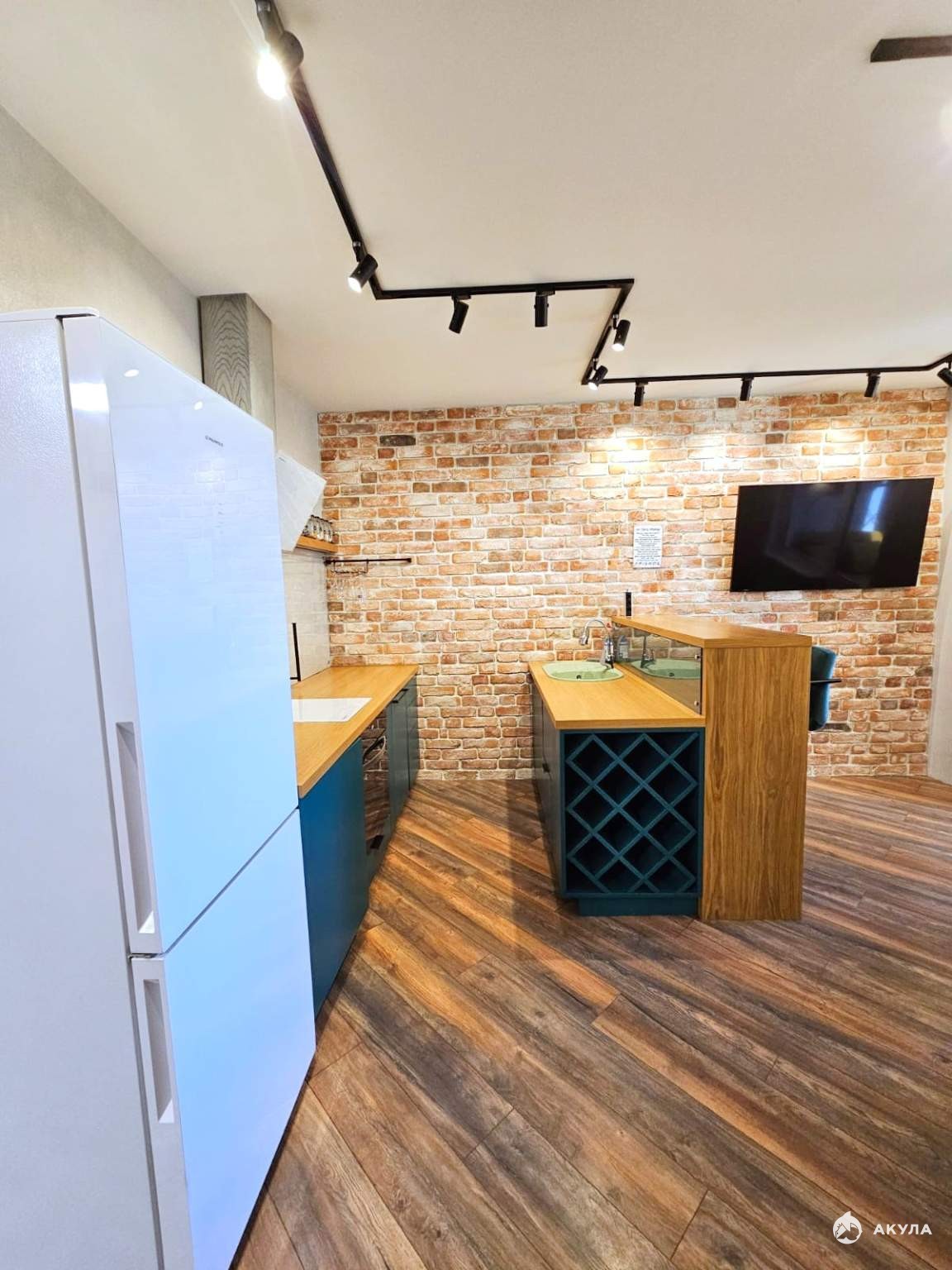 - Кухня-гостиная 13, 4м2: Функциональные кухонный гарнитур с встроенной бытовой техники (посудомоечная машина, электроплита, духовой шкаф, холодильник, микроволновая печь). Присутствует зона отдыха с телевизором. Выполнена шумоизоляция.