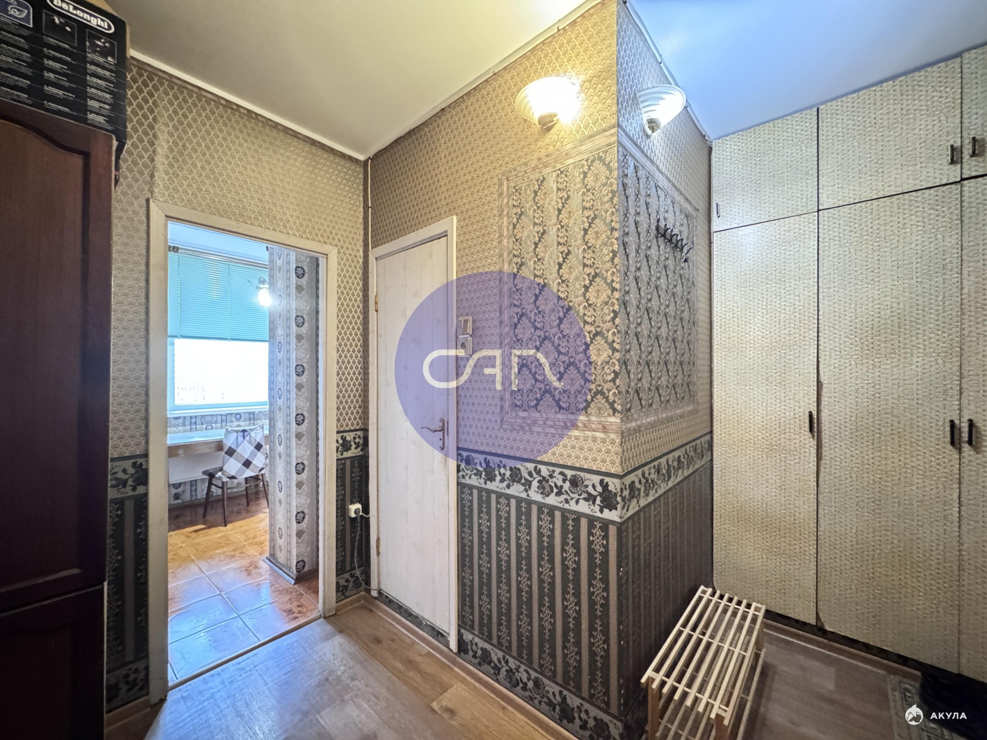 Жилая комната 18 кв. м светлая и функциональная, мебели и техники — по минимуму, что позволяет легко обустроить пространство под свой вкус. В прихожей расположен вместительный встроенный шкаф — идеальное решение для хранения вещей.