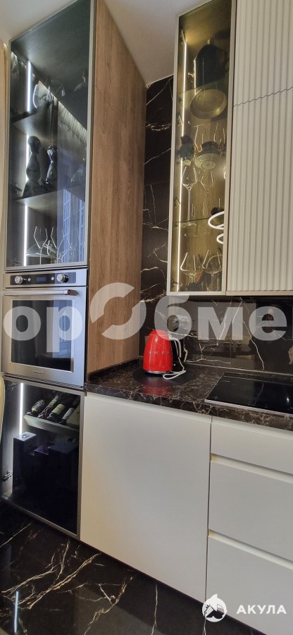 Дизайнерский ремонт, продуманная планировка. Кухня Дриада; бытовая техника американского бренда KitchenAid (холодильник, ПММ, варочная панель, духовой шкаф), обои Trussardi. Санузел совмещённый, сантехника Villeroy&Boch.