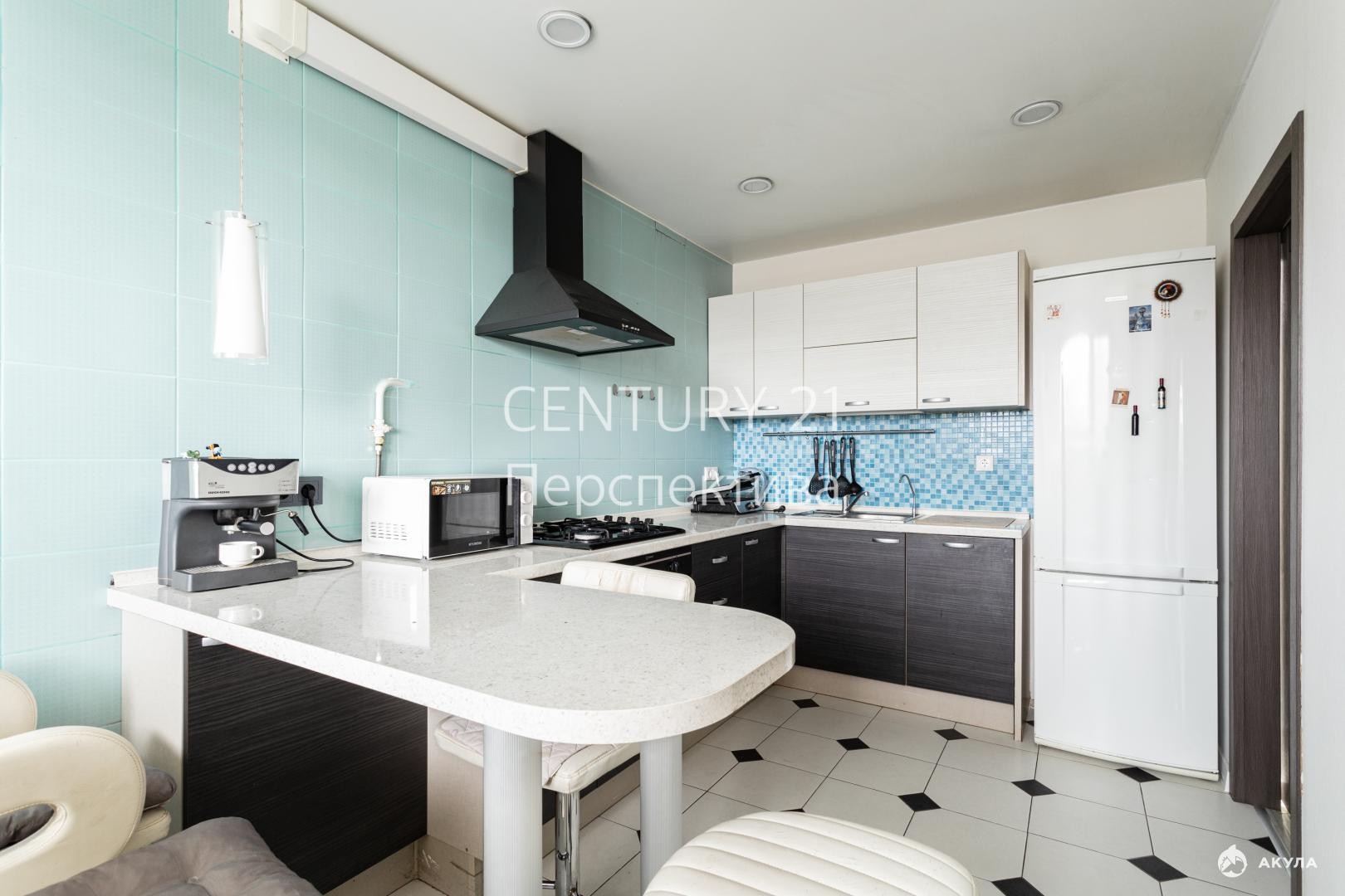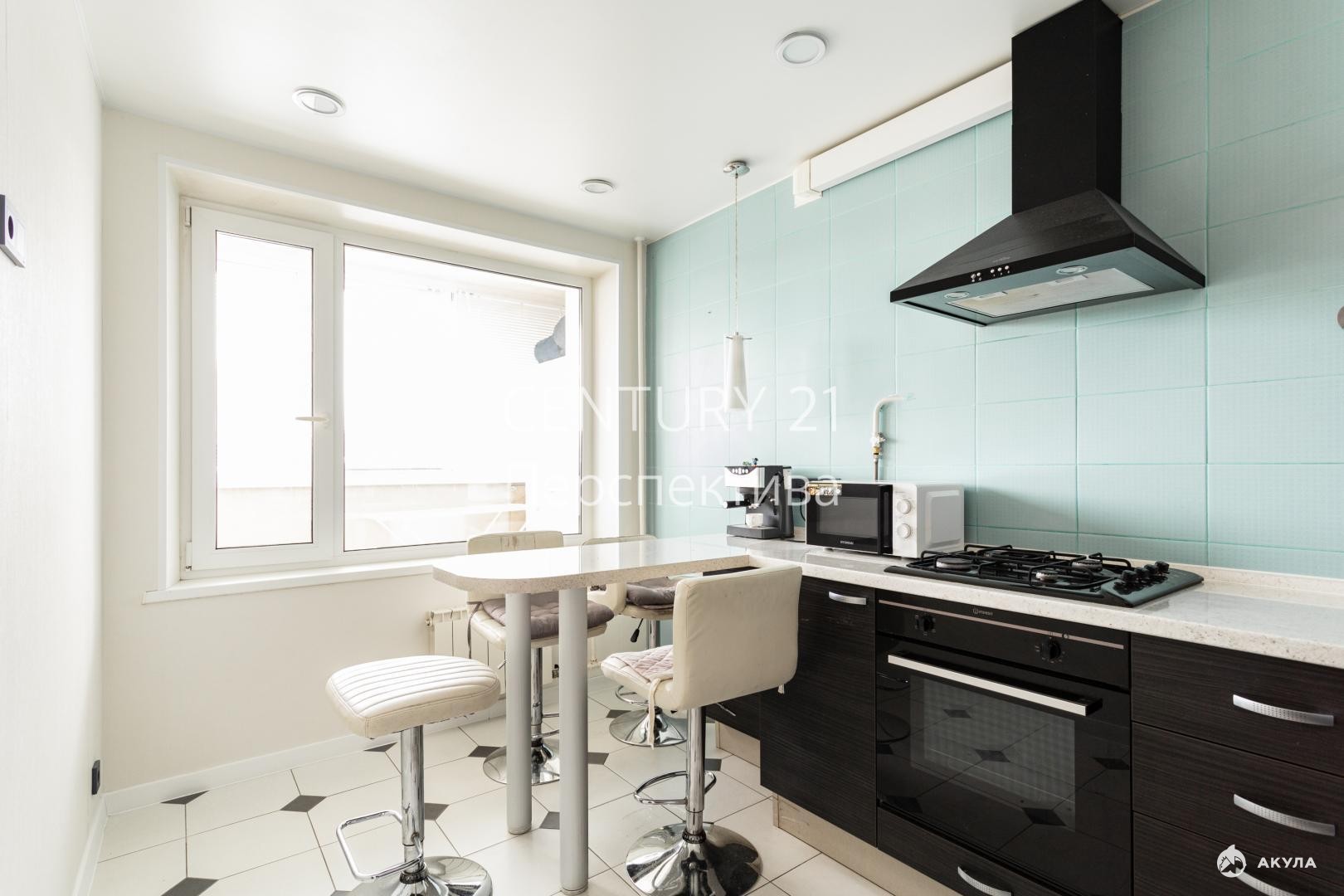 Кухня светлая с современным кухонным гарнитуром, мебель и техника остается в подарок.
