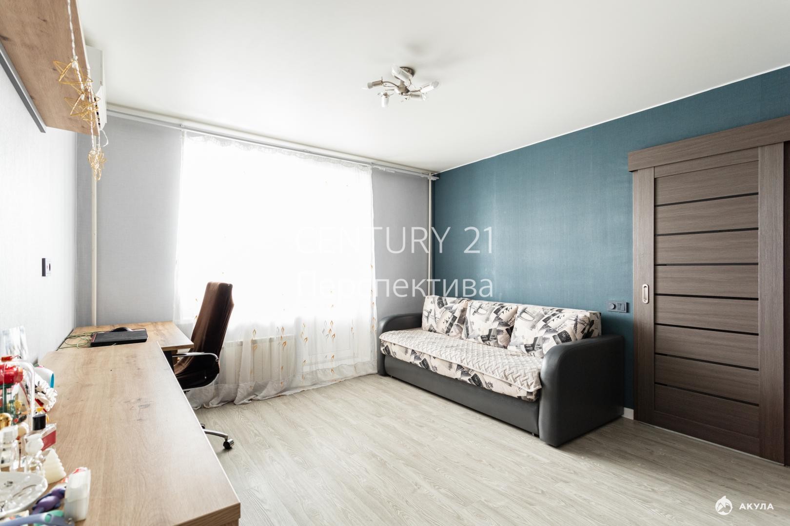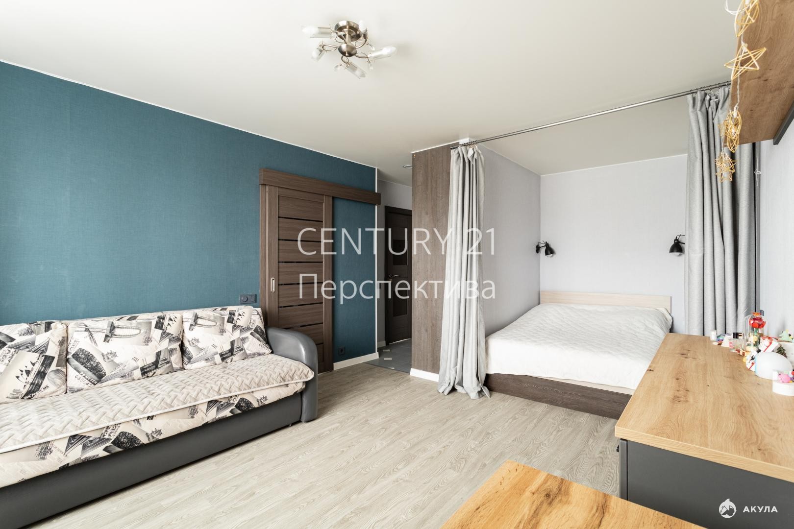 Большая и просторная комната 19, 5 кв.м., есть отдельная спальная зона, где можно разместить кровать, и гостевая зона.