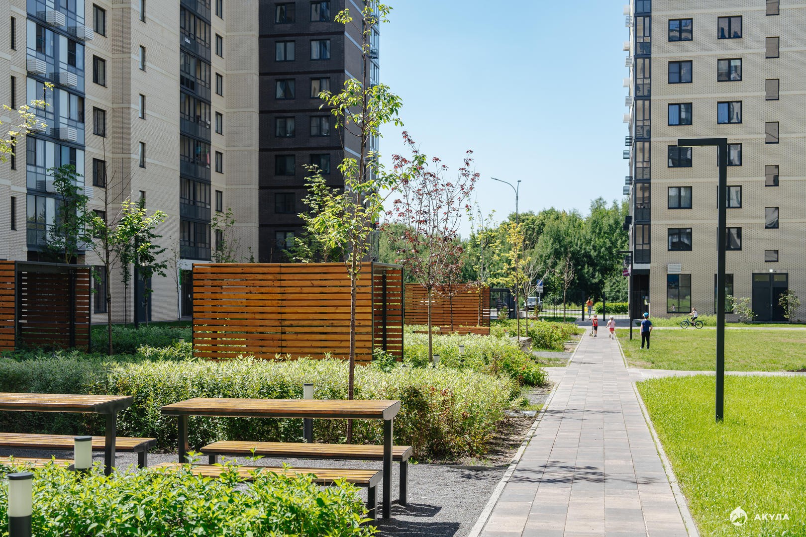 В квартале есть воркаут-зона, игровые площадки, отдельная площадка для выгула собак. Дворы закрыты от машин, для автомобилистов предусмотрен многоуровневый паркинг.