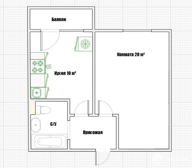 -комната 20 кв. метров с альков