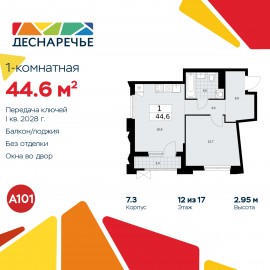 Продается 1-комн. квартира в ЖК "Деснаречье" на 7 этаже. Квартира без отделки, новый владелец может сделать ремонт по индивидуальному дизайн-проекту. Общая площадь: 44.8 кв.м., жилая: 12.7 кв.м., площадь просторной кухни-столовой: 16.9 кв.м. Квартира угловая, идеально подойдет...