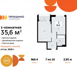 1-комн. квартира от застройщика с отделкой в ЖК "Прокшино" на 7 этаже. Общая площадь: 35.6 кв.м., жилая: 11.6 кв.м., площадь просторной кухни-столовой: 13.1 кв.м. Все окна выходят на одну сторону. В квартире одна лоджия, один совмещенный санузел. Высота потолков 2.95 м. Эта квартира будет...