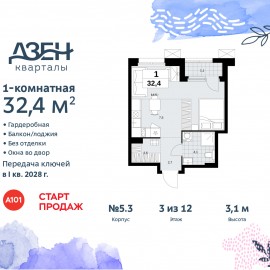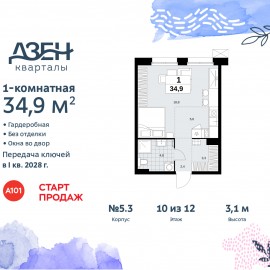 Однокомнатная квартира бизнес-класса-студия от застройщика в ЖК "Дзен-кварталы" на 10 этаже. Квартира без отделки, после получения ключей можно делать ремонт. Общая площадь: 34.9 кв.м., площадь гостиной 24.4 кв.м., из которых 5.6 кв.м. выделено под кухонную зону. Все окна выходят на...
