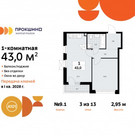 Просторная 1-комн. квартира в ЖК "Прокшино" на 9 этаже. Квартира без отделки, новый собственник может сделать ремонт по своему дизайн-проекту. Общая площадь: 42.2 кв.м., жилая: 13.7 кв.м., площадь просторной кухни-столовой: 18.5 кв.м. Все окна выходят на одну сторону. В квартире одна...
