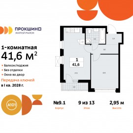 Продается однокомнатная квартира в ЖК "Прокшино" на 9 этаже. Квартира без отделки, после оформления собственности можно делать ремонт. Общая площадь: 41.6 кв.м., жилая: 12.6 кв.м., площадь просторной кухни-столовой: 17.6 кв.м. Угловая квартира, идеально подойдет любителям тишины и...