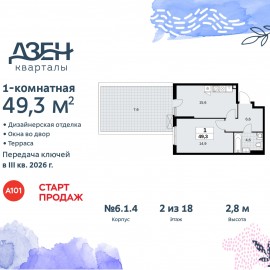 Продается 1-комн. квартира с отделкой в ЖК "Дзен-кварталы" на 2 этаже. Общая площадь: 51 кв.м., жилая: 12.1 кв.м., площадь просторной кухни-столовой: 14.5 кв.м. Все окна выходят на одну сторону. В квартире один балкон, один совмещенный санузел. Терраса представляет собой роскошную зону...